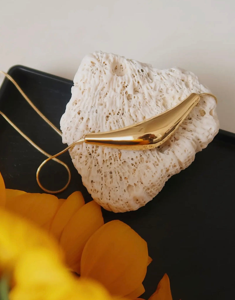 Cendre 18K Gold Non-Tarnish Curve Sweater Necklace