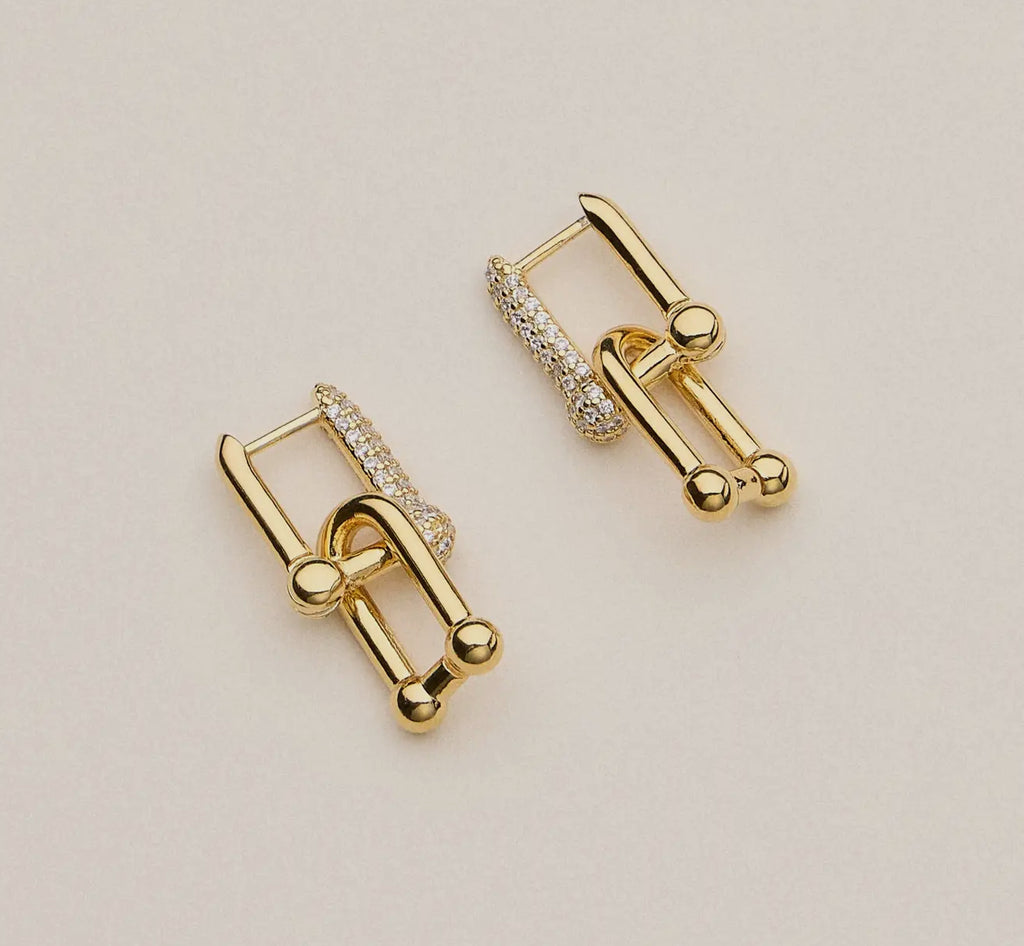 18K gold dipped pave lock stud earrings