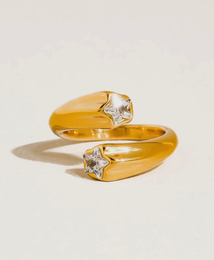 Fenella 18K Gold Non-Tarnish Double Star Cz Ring