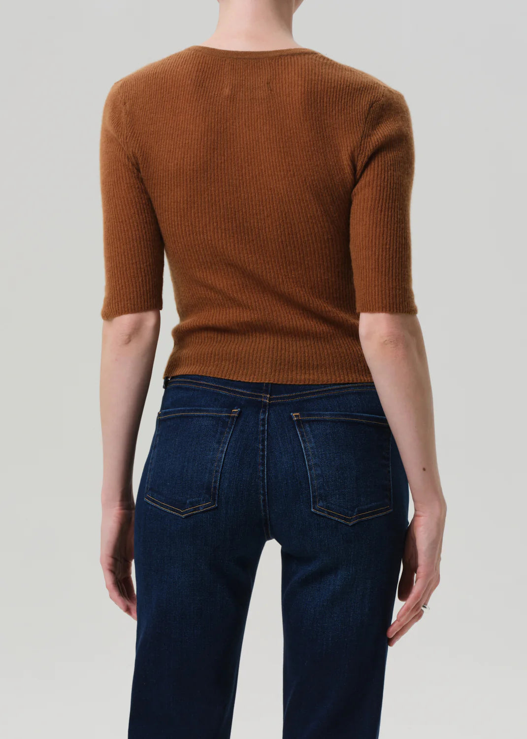 The ‘Tabitha’ is a slim-fitting cardigan knit from a breathable blend of wool and ultra-fine cashmere. Designed with cropped elbow sleeves and a close silhouette, it layers cleanly or wears well on its own—an elevated staple with timeless appeal.