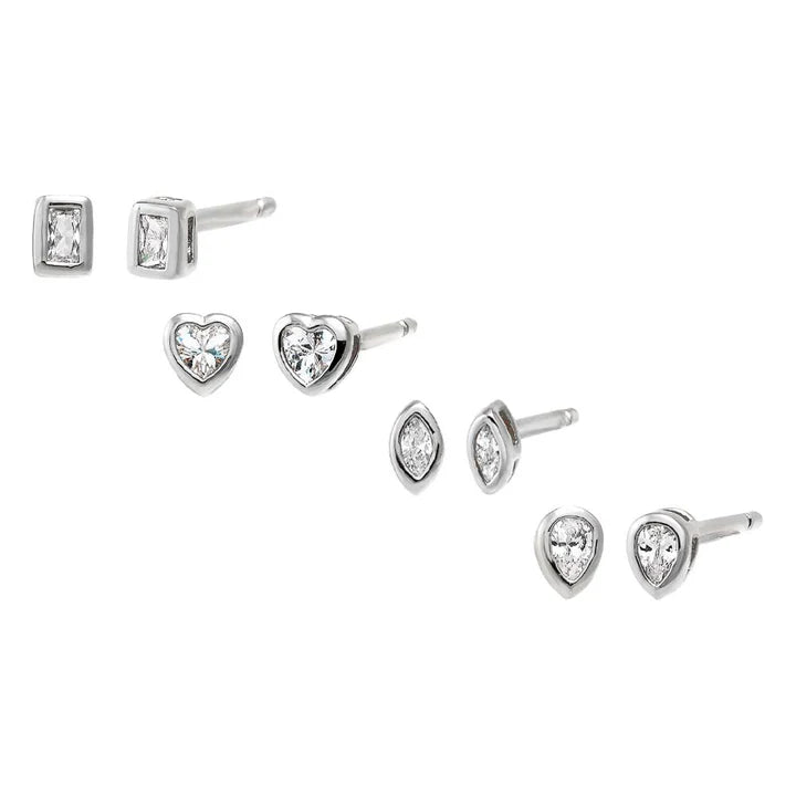 CZ Bezel Multi Shape Stud Earring Combo Set
