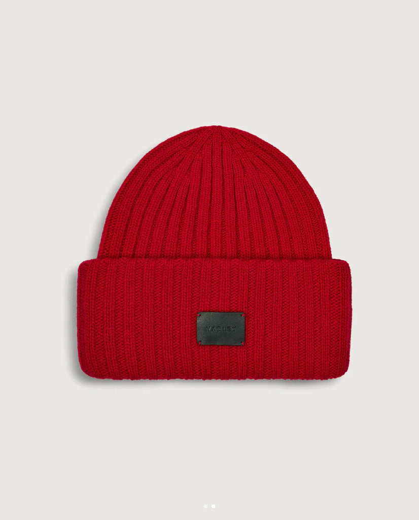 Elva Chunky Rib Beanie in Red Dahlia