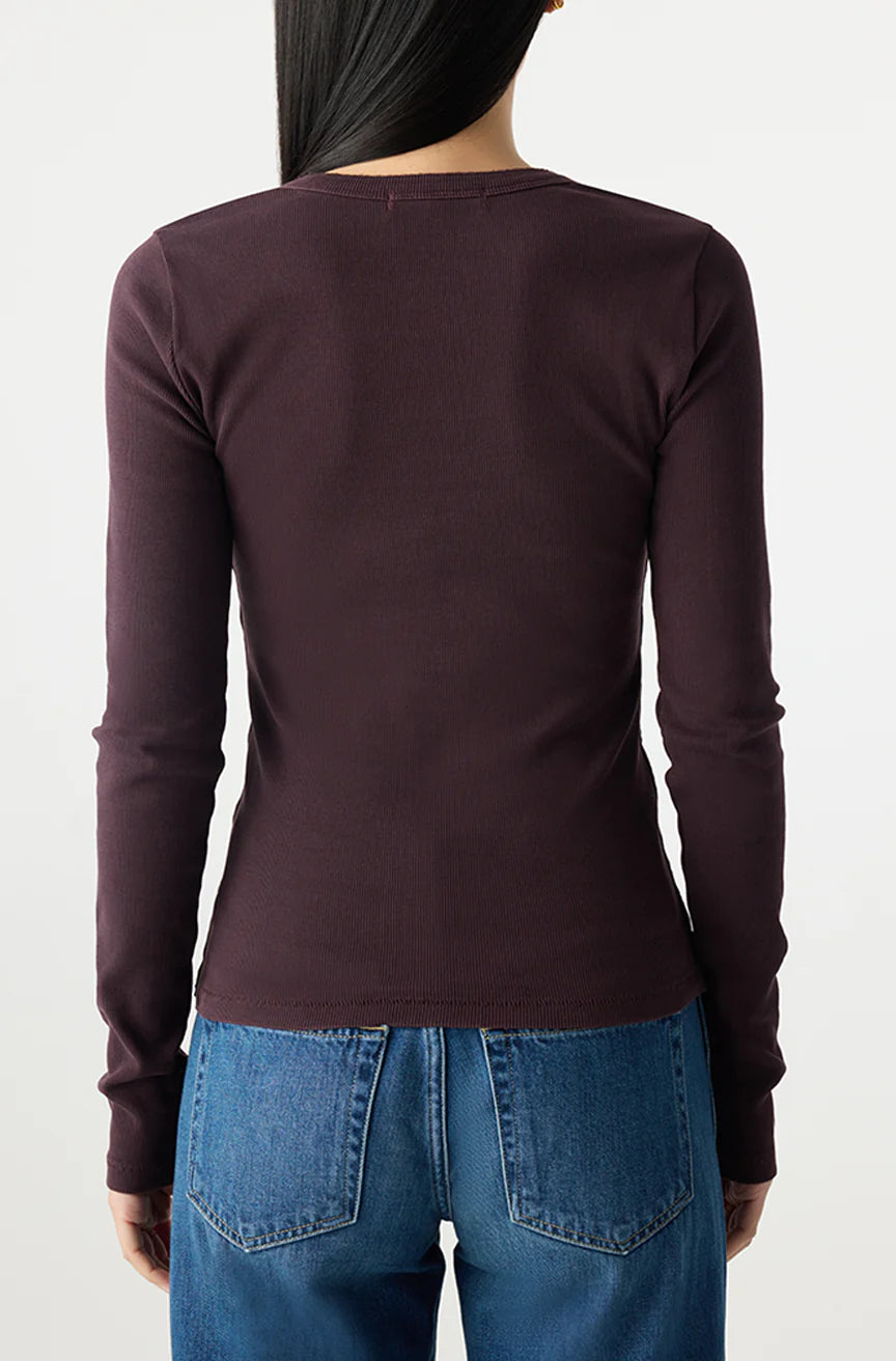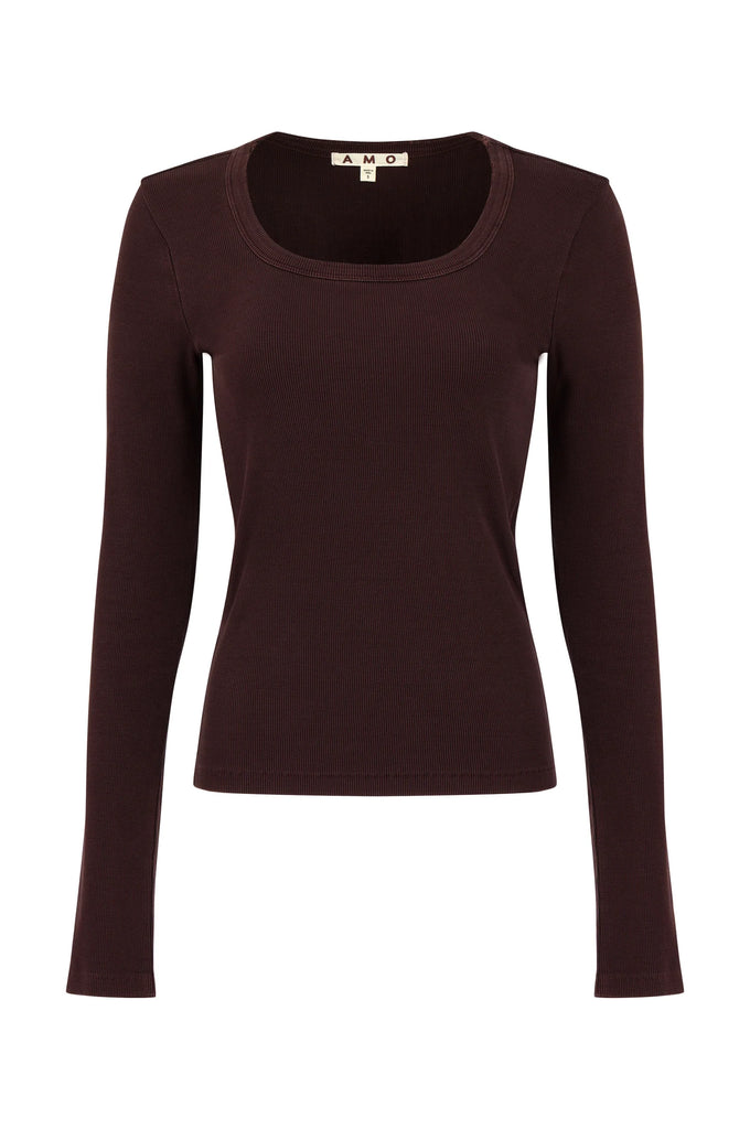Mini rib long sleeve with a flattering scoop neck and close fit.